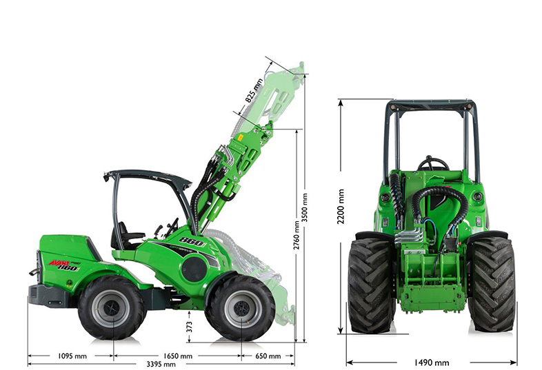 Som seriens flaggskepp tänjer Avant 800-serien på gränserna för kompaktlastare. Den har bättre lyfthöjd och kapacitet än någonsin tidigare. Den når hela vägen upp till höga mixervagnar och kan lasta ett släp från ena sidan ända till yttersta kanten – du behöver inte köra runt släpet vid lastning. 800-serien kan också enkelt hantera stenpallar tack vare kapaciteten på 1,9-ton. Samtidigt är den kompakt nog att kunna användas på platser där större maskiner inte får plats och kan transporteras på en vanlig släpvagn.
