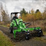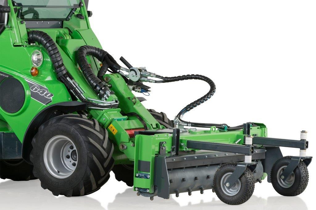 Redskapet arbetar på ett djup av upp till 65 mm och är utrustat med en axel försedd med slitstarka stålpinnar. Vid körning framåt roterar axeln mot körriktningen, vilket effektivt luckrar och flyttar material. Två justerbara stödhjul ger god kontroll över arbetsdjupet, och med en svängbarhet på upp till ±30° kan redskapet anpassas efter terrängen.