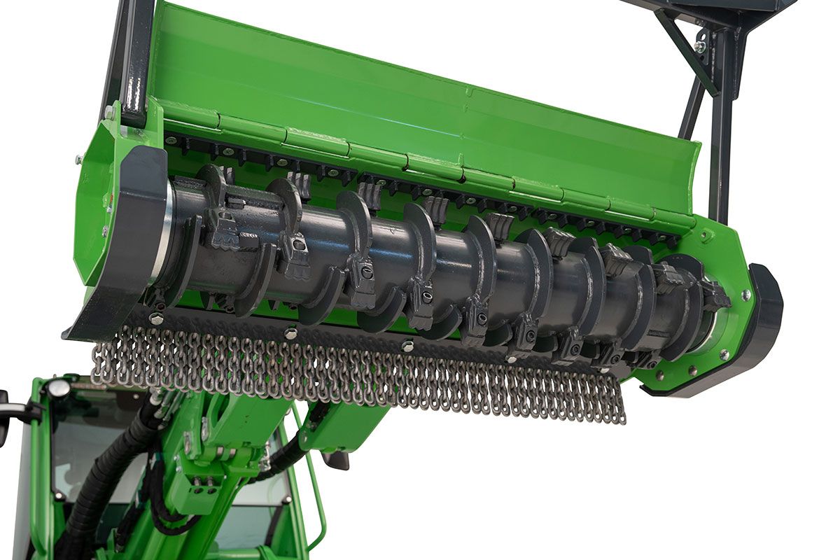 Det finns en hydrauliskt manövrerad kåpa framför rotorn. När kåpan är öppen är det möjligt att fälla stående träd och buskar. På detta sätt går det träiga materialet bättre in i rotorn och böjs inte under fräsen innan det kapas. När kåpan är stängd förhindrar den att material kastas ut och förbättrar flisningen.